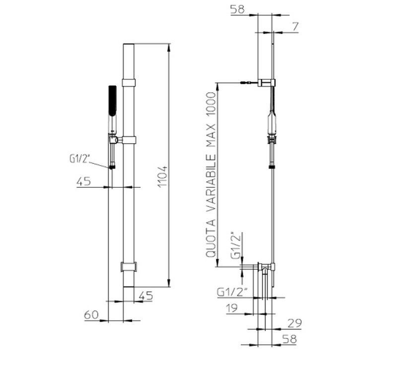 Инновация от Bossini Душевой гарнитур с подводом для воды, более эстетично без лишних деталей на стене. Комплект: душевая штанга FLAT из латуни 110 см.