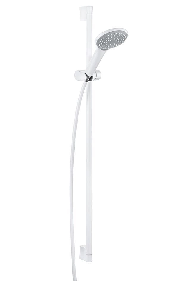 Основные характеристики: - Душевой гарнитур для ванны и душа - Длина штанги: 90 см - Душевая лейка - 1 вид струи - Система быстрой очистки от известкового налета - Шланг: 160 см - Форма: округлая - Материал: латунь - Цвет: белый