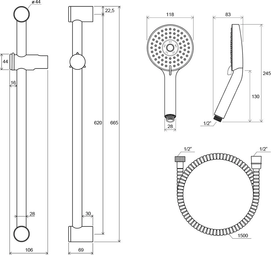 - душевой держатель: 60 см, подвижный