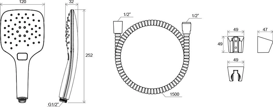 - держатель для душа: пластиковый