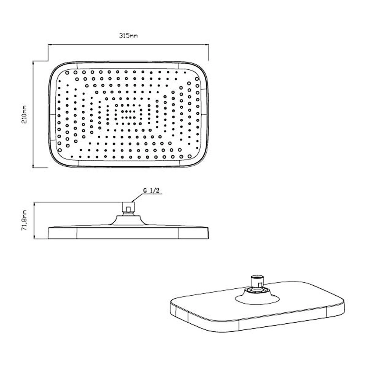 Размер верхнего душа, мм 315x210