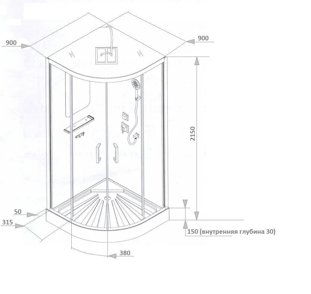 Фасад и задние стенки из закаленного стекла 6 мм.