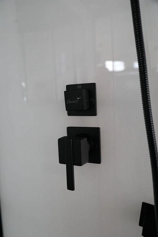 Душевая кабина станет стильным акцентом в ванной комнате. В модели красиво сочетаются тонированное стекло с дизайнерским рисунком Fiore в черном профиле и ультра белые задние стенки Bianco profondo.