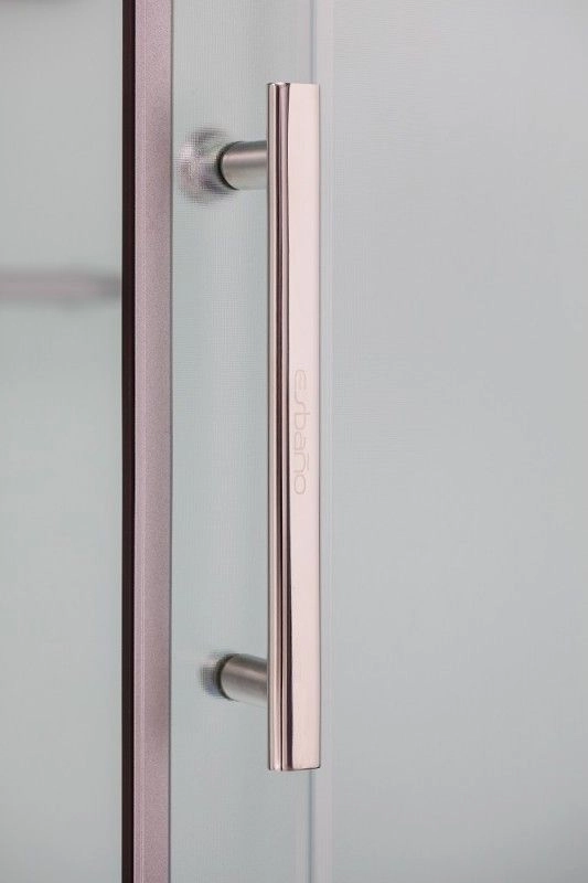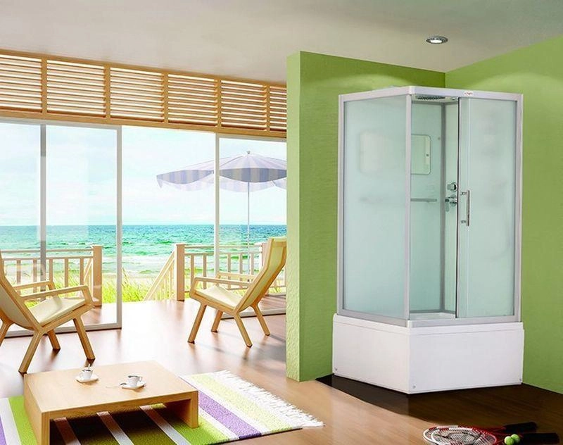 Кабина прямоугольная ESBANO-108CKRB(R) (с крышей) -универсальная (сборка в правом или левом исполнении) -высокий (42 см) акриловый поддон -встроенное сидение -слив-перелив полуавтомат -сифон с гидрозатвором -задние стекла: закаленное крашенное стекло (белое, 5мм) -передние стекла: закаленное рифленое стекло (5 мм) -крыша: закаленное крашенное стекло (белое, 5мм) -профиль матовый хром -смеситель -душевая многофункциональная лейка -тропический душ -вентиляционная решетка -штанга с держателем и мыльницей -большое зеркало с фацетом 65х30 -стеклянная полочка (65 см) с отверстием под стакан и ограничителем -стеклянный стакан -двойные (спаренные) верхние и нижние ролики РАЗМЕР: 100 х 80 х 211