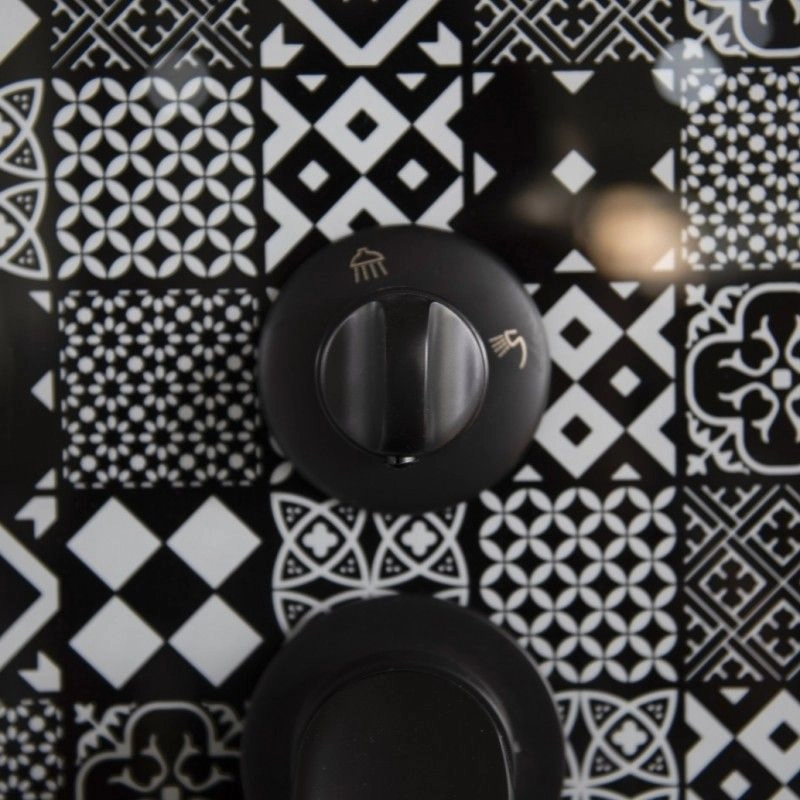 Кабина прямоугольная ESBANO-ESB-1280CKR -низкий (15 см) акриловый поддон черного цвета -сифон с гидрозатвором, крышка сифона в цвет поддона -задние стекла: закаленное крашеное чёрно-белое стекло с интегрированным зеркалом, закаленное крашеное декорированное стекло (5мм) -передние стекла: закаленное прозрачное стекло с покрытием "easy clean" (5 мм) -профиль матовый чёрный -смеситель матовый черный -душевая многофункциональная лейка со шлангом чёрного матового цвета -держатель лейки чёрный матовый -полочка для шампуня чёрная матовая -двойные (спаренные) верхние и нижние ролики чёрного цвета -верхний тропический душ чёрного матового цвета РАЗМЕР: 120 х 80 х 210
