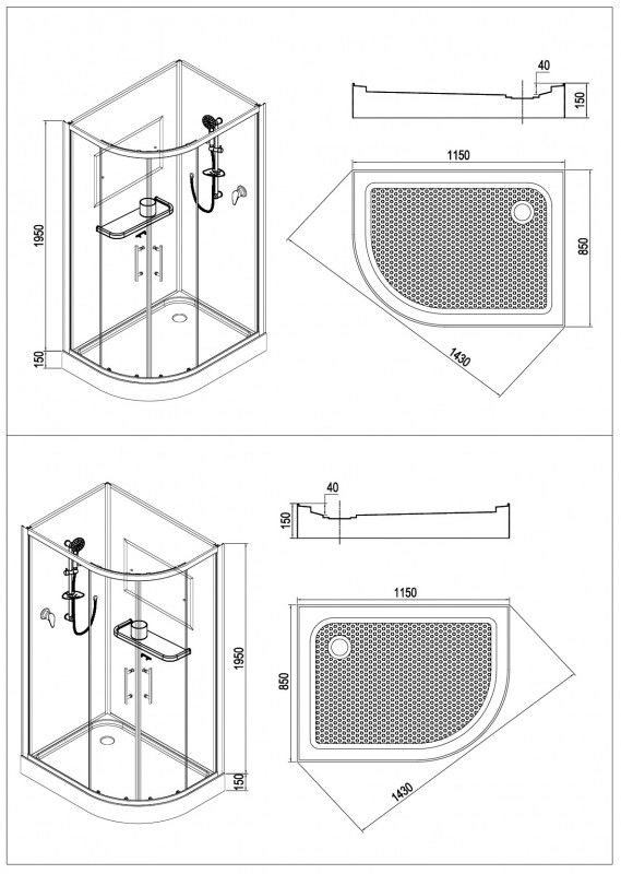 Кабина полукруглая ассиметричная ESBANO-115C(LEFT) -низкий (15 см) акриловый поддон -сифон с гидрозатвором -задние стекла: закаленное крашенное стекло (белое, 5мм) -передние стекла: закаленное рифленое стекло (5 мм) -профиль матовый хром -смеситель -душевая многофункциональная лейка -штанга с держателем и мыльницей -большое зеркало с фацетом 65х30 -стеклянная полочка (65 см.) с отверстием под стакан и ограничителем -стеклянный стакан -двойные (спаренные) верхние и нижние ролики РАЗМЕР: 85 х 115 х 210