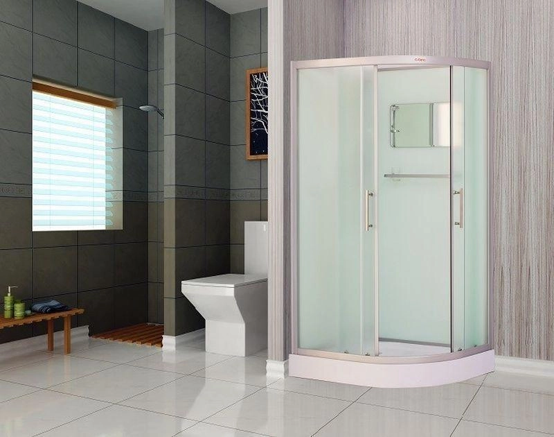 Низкий поддон. Сифон с гидрозатвором. Стекло: 5 мм, переднее - "матовое". заднее - "белое крашеное" с интегрированным зеркалом 65х30. Комплектующие: полочка со стаканчиком, смеситель, 3-х режимная душевая лейка на стойке, мыльница, двойные ролики. Модель "С" - угловая кабина (без крыши).