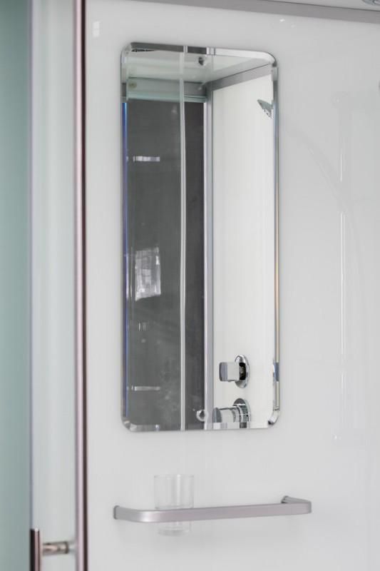 - Стеклянная полочка (35 см) с отверстием под стакан и ограничителем