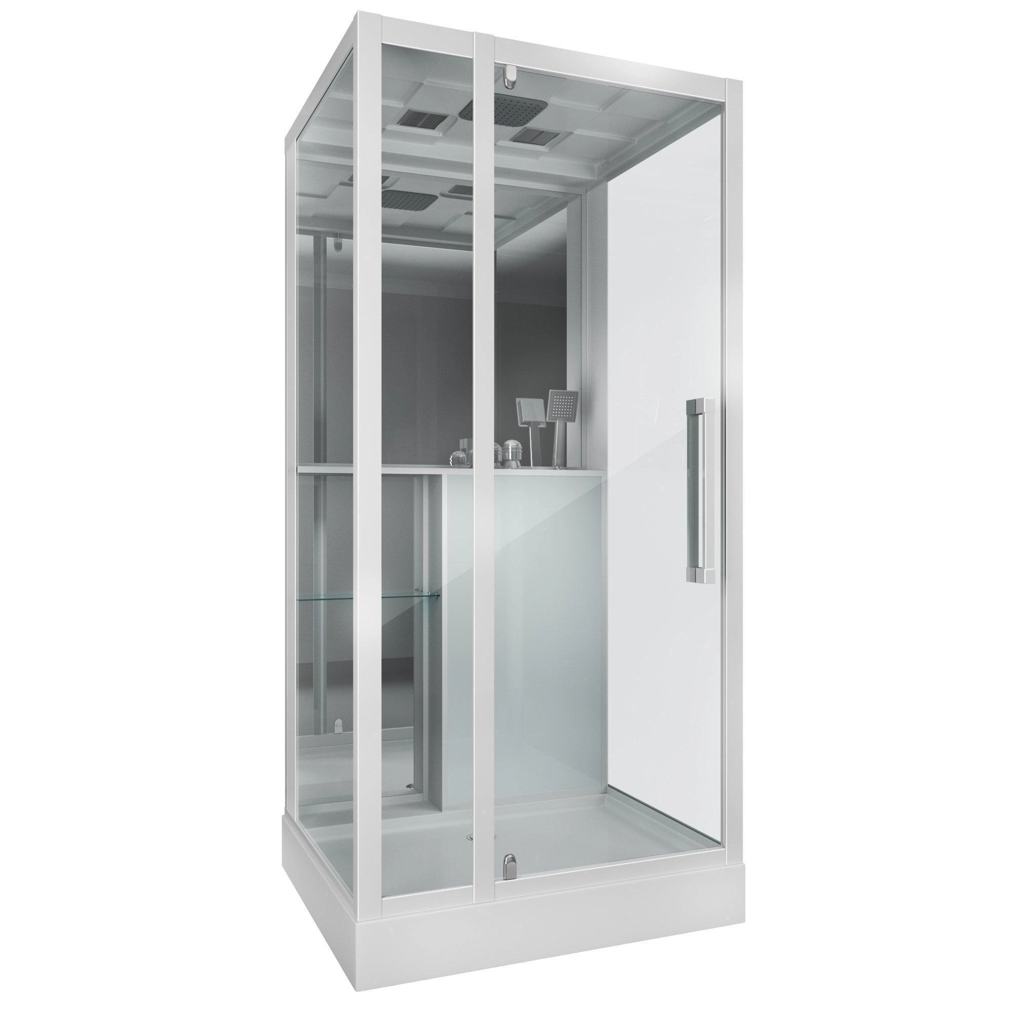 Количество коробок, 5 шт. Сборка без силикона и саморезов -нет. Управление - не комплектуется пультом управления. Электропитание без электрики. Ориентация универсальная. Количество секций двери 1. Ширина входа 53 см. Толщина полотна двери, 6 мм. Цвет задней стенки белая. Исполнение задней стенки стекло закаленное стекло. Цвет корпуса белый. Цвет профиля белый. Материал профиля алюминий. Материал поддона акрил. Высота поддона, 15 см. Глубина поддона, 5см. Встроенное сиденье - нет. Зеркало есть. Подголовника нет. Антискользящее покрытие есть. Вентиляции нет. Освещения нет. Полочка есть. Регулируемая высота ножек - 0,5-1,5см. Тропический (верхний) душ - есть. Турецкая баня - нет.