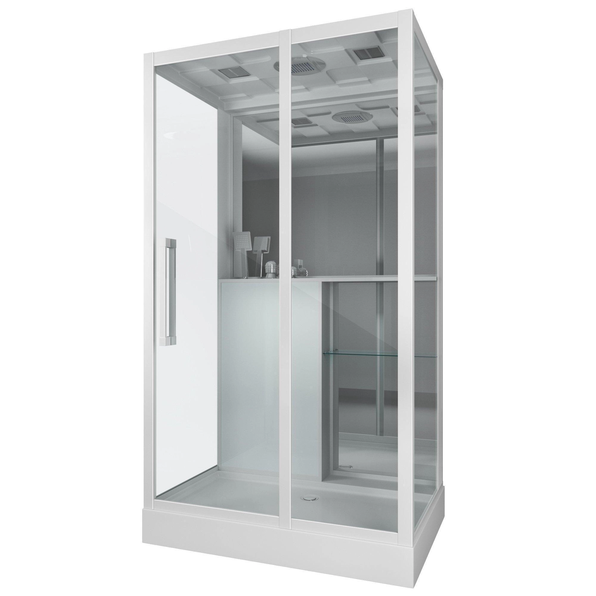 Количество коробок, 5 шт. Сборка без силикона и саморезов -нет. Управление - не комплектуется пультом управления. Электропитание без электрики. Ориентация универсальная. Количество секций двери 1. Ширина входа 53 см. Толщина полотна двери, 6 мм. Цвет задней стенки белая. Исполнение задней стенки стекло закаленное стекло. Цвет корпуса белый. Цвет профиля белый. Материал профиля алюминий. Материал поддона акрил. Высота поддона, 15 см. Глубина поддона, 5см. Встроенное сиденье - нет. Зеркало есть. Подголовника нет. Антискользящее покрытие есть. Вентиляции нет. Освещения нет. Полочка есть. Регулируемая высота ножек - 0,5-1,5см. Тропический (верхний) душ - есть. Турецкая баня - нет. Комментарии - только правая, как на фто в каталоге, левую сделать нельзя.