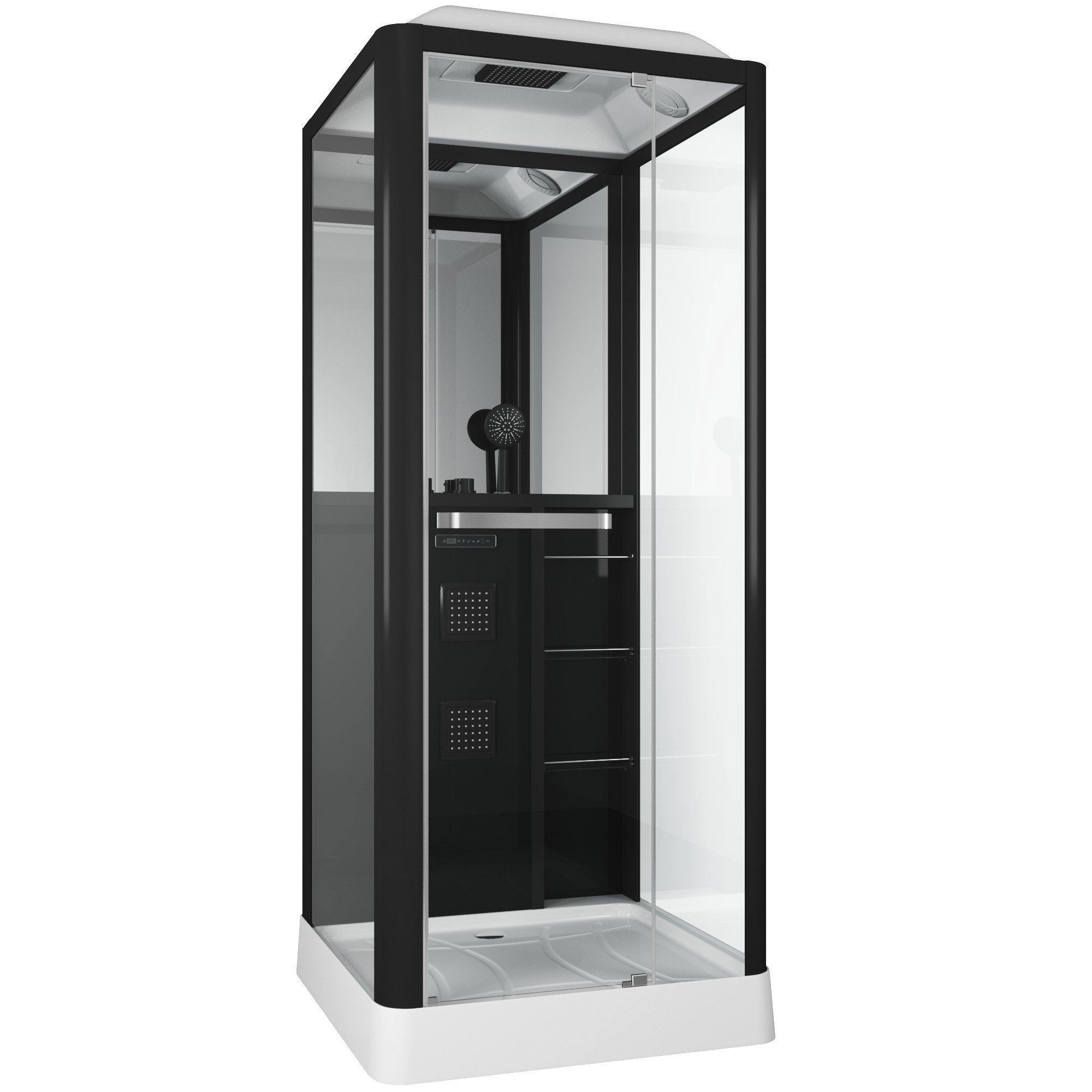 Количество коробок, 3 шт. Сборка без силикона и саморезов -нет. Управление сенсорное. Электропитание 220 В. Ориентация универсальная. Гидромассаж в кабине есть. Зона гидромассажа спина. Общее количество форсунок 2. Количество форсунок спинного массажа 2. Количество секций двери 1. Ширина входа 50 см. Толщина полотна двери, 6 мм. Цвет задней стенки черный. Исполнение задней стенки стекло. Цвет корпуса черный. Цвет профиля черный. Материал профиля алюминий. Материал поддона акрил. Высота поддона, 15 см. Глубина поддона, 5 см. Встроенное сиденье -отдельная опция табурет Grossman оргстекло. Зеркало есть. Подголовника нет. Антискользящее покрытие есть. Вентиляция есть. Освещение есть. Полочка есть. Радио есть. Тропический (верхний) душ есть. Турецкая баня - баня Grossman отдельно. Комментарии - Слив ближе к центральной панели по центру.