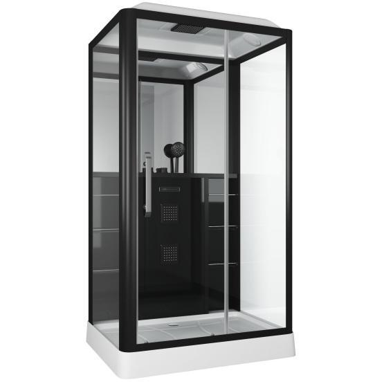 Количество коробок, 3 шт. Сборка без силикона и саморезов -нет. Управление сенсорное. Электропитание 220 В. Ориентация левая. Гидромассаж в кабине есть. Зона гидромассажа спина. Общее количество форсунок 2. Количество форсунок спинного массажа 2. Количество секций двери 1. Ширина входа 46 см. Толщина полотна двери, 6 мм. Цвет задней стенки черный. Исполнение задней стенки стекло. Цвет корпуса черный. Цвет профиля черный. Материал профиля алюминий. Материал поддона акрил. Высота поддона, 15 см. Глубина поддона, 5 см. Встроенное сиденье -отдельная опция табурет Grossman оргстекло. Зеркало есть. Подголовника нет. Антискользящее покрытие есть. Вентиляция есть. Освещение есть. Полочка есть. Радио есть. Тропический (верхний) душ есть. Турецкая баня - баня Grossman отдельно. Комментарии - Слив ближе к центральной панели по центру.