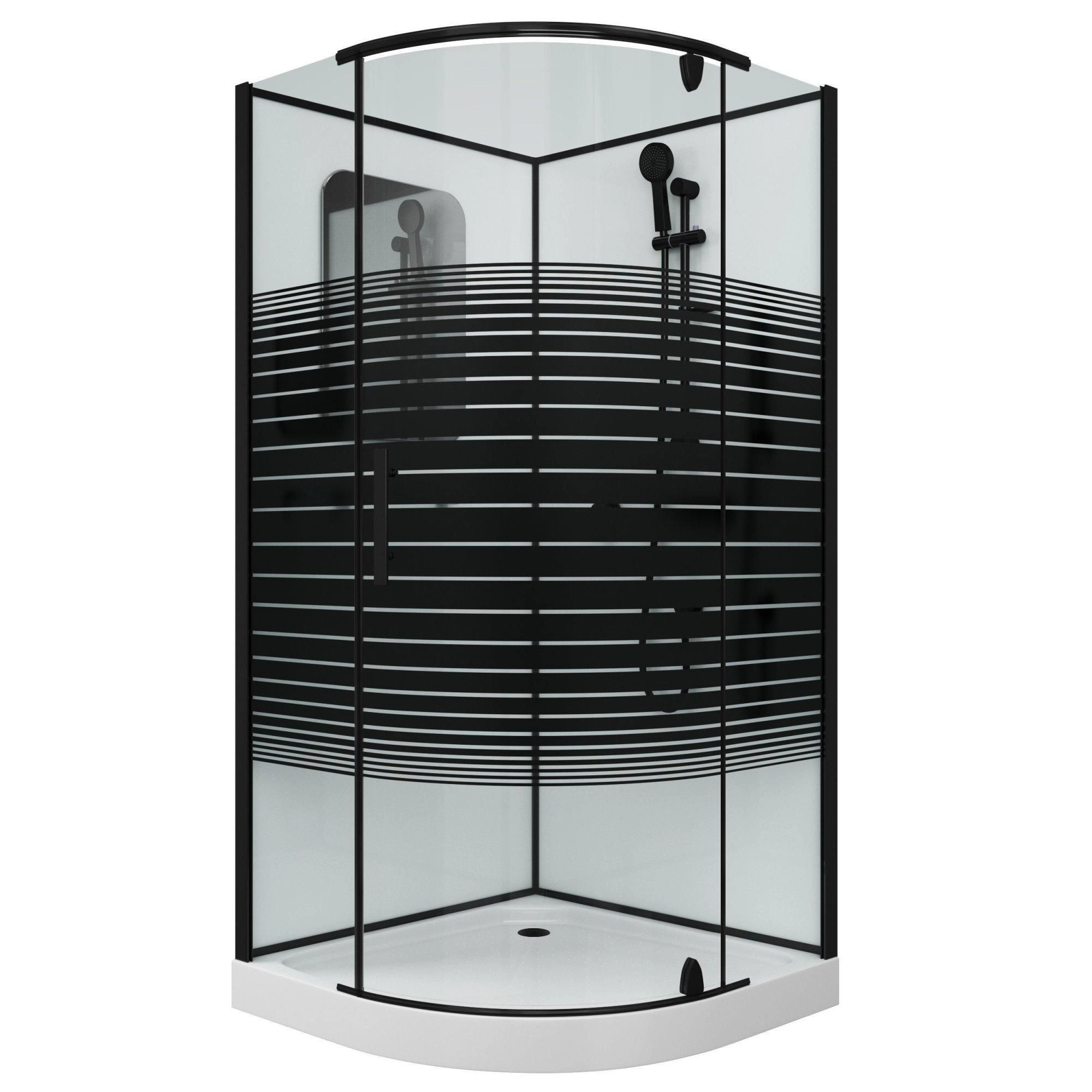 Количество коробок, 4 шт. Сборка без силикона и саморезов -да. Управление - не комплектуется пультом управления. Электропитание без электрики. Ориентация универсальная. Количество секций двери 1. Ширина входа 51 см. Толщина полотна двери, 6 мм. Цвет задней стенки белая. Исполнение задней стенки закаленное стекло. Цвет корпуса черный. Цвет профиля черный. Материал профиля алюминий. Материал поддона акрил. Высота поддона, 15 см. Глубина поддона, 3см-5см. Встроенное сиденье - нет. Зеркало есть. Подголовника нет. Антискользящее покрытие есть. Вентиляции нет. Освещения нет. Полочка есть. Регулируемая высота ножек - 0,5-1,5см. Тропический (верхний) душ - нет. Турецкая баня - нет. Комментарии -слив в углу.
