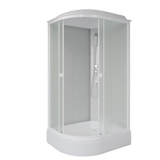 Стекла душевой кабины Promo имеют матовую поверхность. Двери раздвижные с одинарными роликами.
