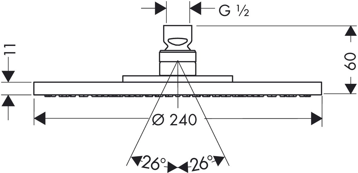 размер душевого диска: 240 мм тип струи: RainAir расход воды для струи RainAir (при 3 бар): 18 л/мин полностью хромированный душевой диск материал душевого диска: металл
