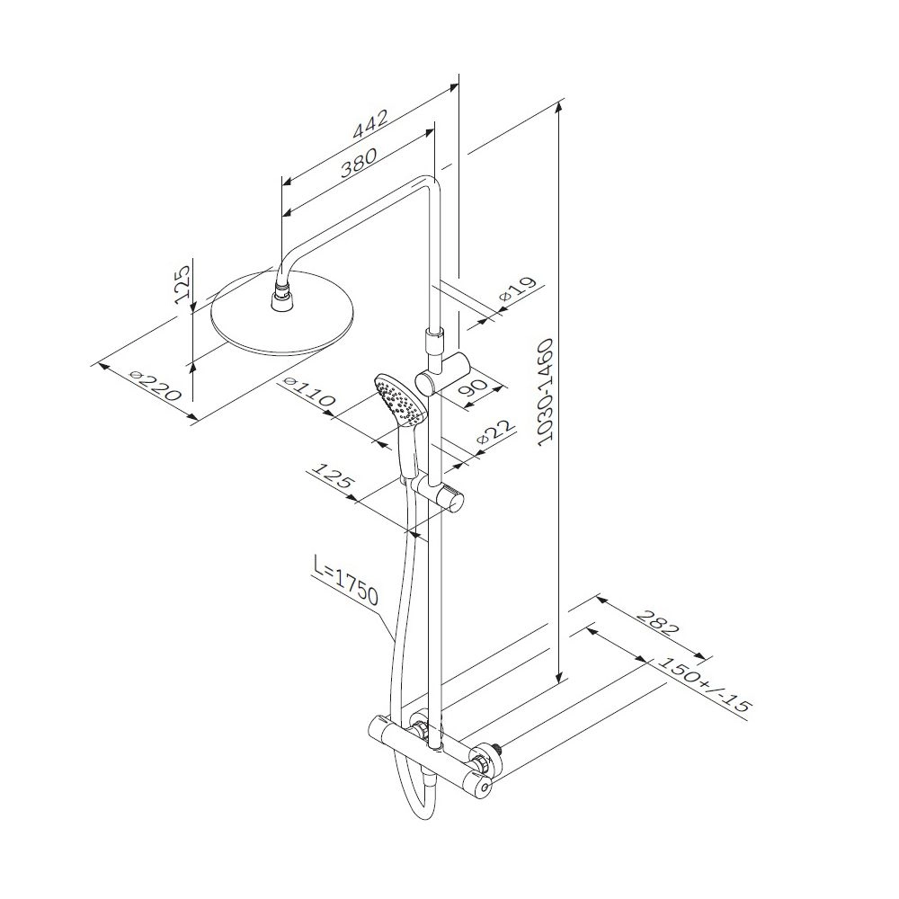 Размер верхнего душа (мм) 220