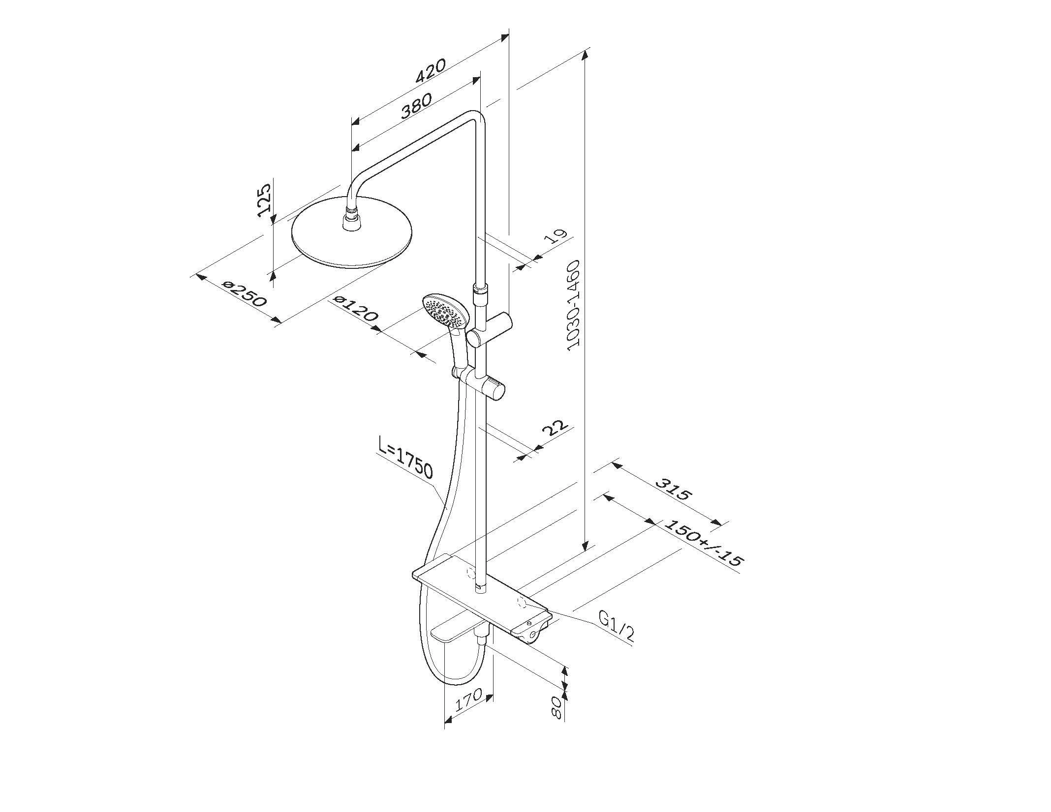Размер верхнего душа (мм) 250