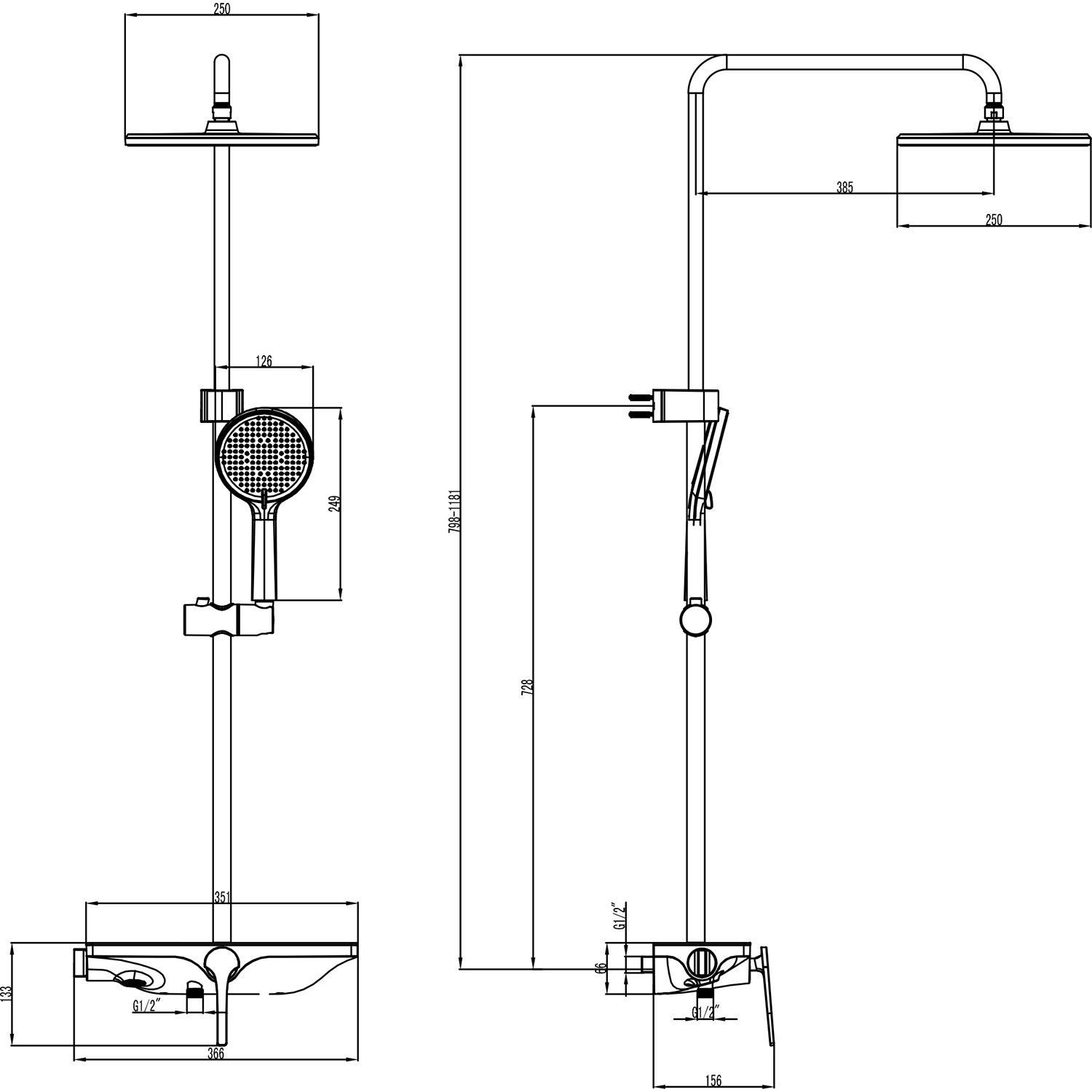 Размер верхнего душа,мм 250