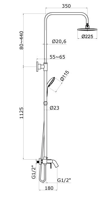 Размер верхнего душа,мм 225