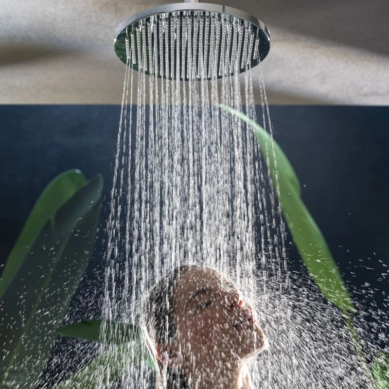 Верхняя душевая лейка APICE ? 280 мм.- Душевая лейка APICE из АБС-пластика ? 280 мм с шарниром 1/2 "F и силиконовым диффузором. Широкая дождевая струя. Функция Easy-Clean для легкого удаления известкового налета.