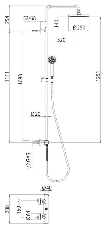 размер верхнего душа: 25 см