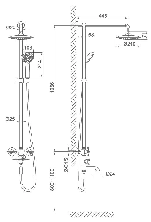 Душевая система D&K DA1384741E09 хром керамическая кран-букса,Комплектация: душевая лейка,шланг для душа,держатель душа