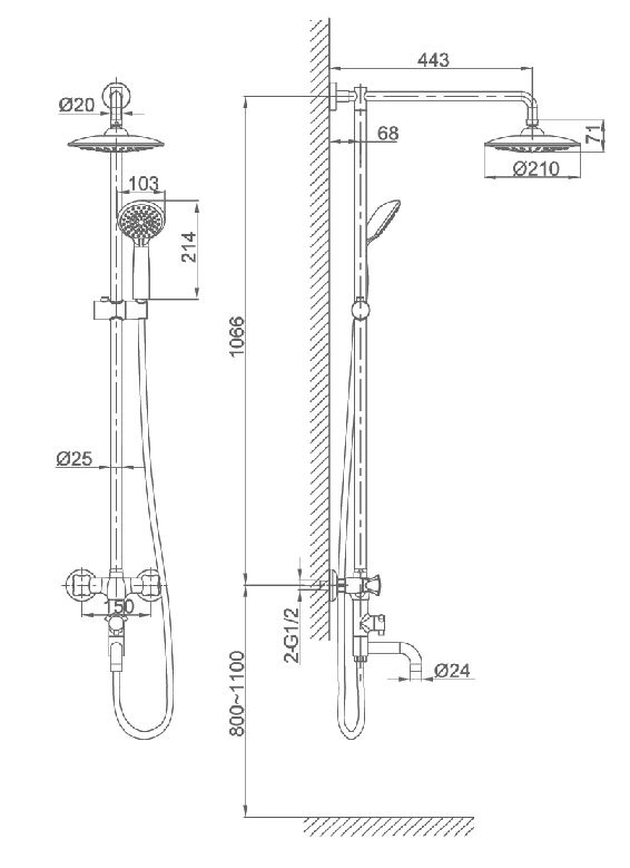 Душевая система D&K DA1384701E09 хром душевая лейка, шланг для душа, держатель для душа, дивертор