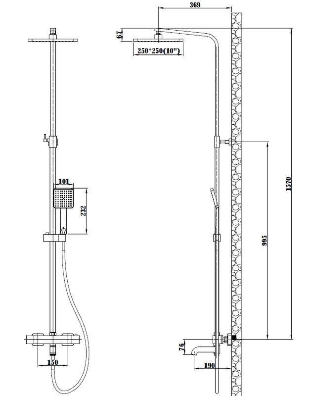 Выдвижная телескопическая стойканерж. сталь, покрытие черный матовый: высота функциональная 995 -1570мм , диаметр 25мм ,вылет верхнего душа 369мм ,держатель лейки плавающий FightFix Лейка верхнего душаABS-пластик : на подвижном шарнире, диаметр 225х225мм, Форсунки Self-Clean Device, Eco system Ручная лейка: диаметр 101мм, 1 режим, форсунки Self-Clean Device, Eco system Термостатный смеситель с поворотным изливом: картридж двухконтурный с переключателем в одной рукоятке, поворотный излив с вылетом 190мм служит дивертором, ограничитель температуры 38 градусов, защитные сетки и обратные клапаны интегрированы в корпус смесителя Комплектация: душевой шланг 150см в мет. оплетке , монтажный комплект