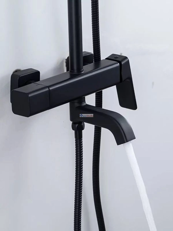 Стойка имеет регулируемый верхний душ прямоугольной формы, который позволяет выбрать оптимальный угол для комфортного использования.