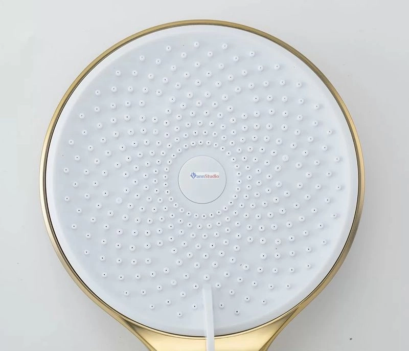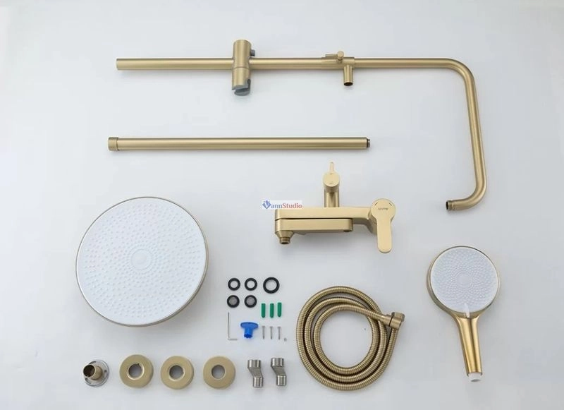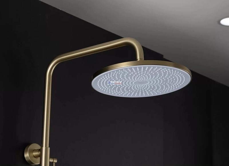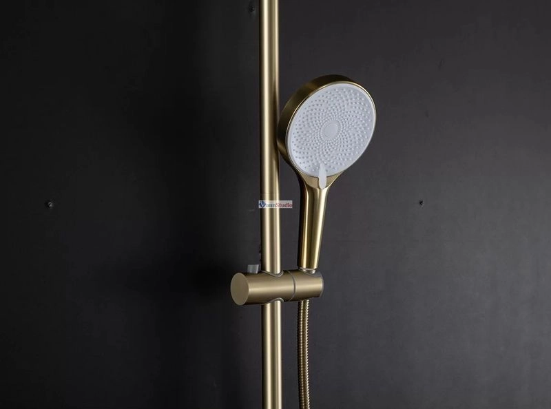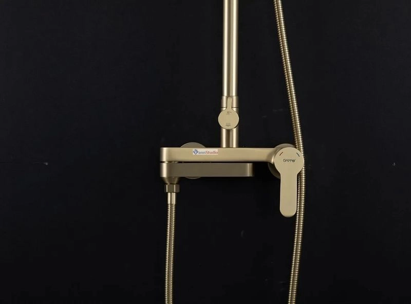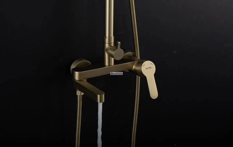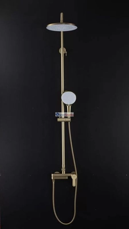 Душевая стойка с тропическим душем Gappo G2499-33, изготовлена из высококлассной нержавеющей стали в матовом цвете "сатин золотой". Верхняя лейка также изготовлена из нержавеющей стали. В комплекте все необходимые крепления, душевой шланг 150 сантиметров, ручная лейка с 3 режимами струи. Переключение между изливом и душем производится с помощью поворота излива на 90 градусов. Высота стройки регулируется от 109 до 146 сантиметров.