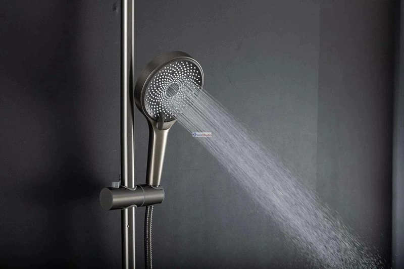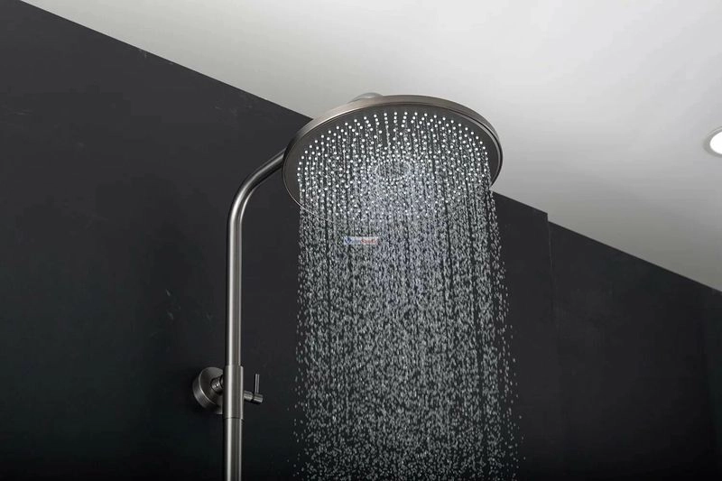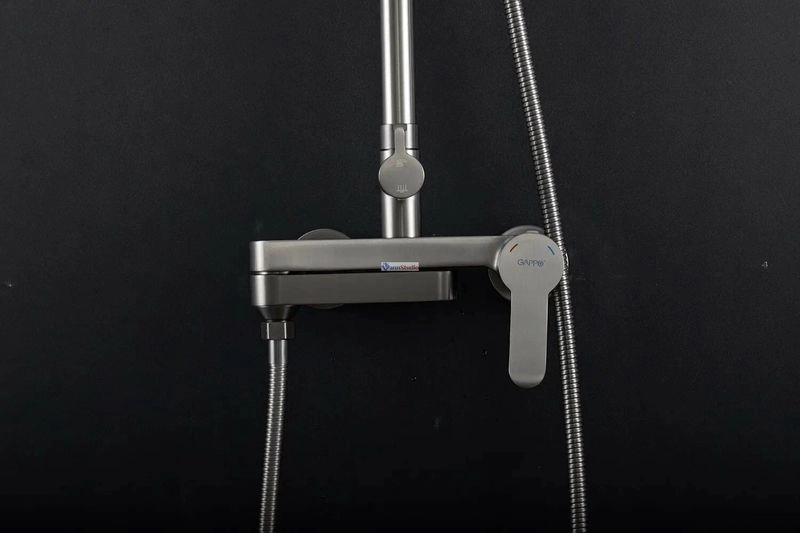 Душевая стойка с тропическим душем Gappo G2499-39, изготовлена из высококлассной нержавеющей стали в матовом цвете "оружейная сталь". Верхняя лейка и ручная лейка из авс-пластика. В комплекте все необходимые крепления, душевой шланг 150 сантиметров, ручная лейка с 3 режимами струи. Переключение между изливом и душем производится с помощью поворота излива на 90 градусов. Высота стройки регулируется от 109 до 146 сантиметров.