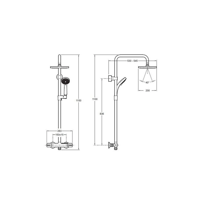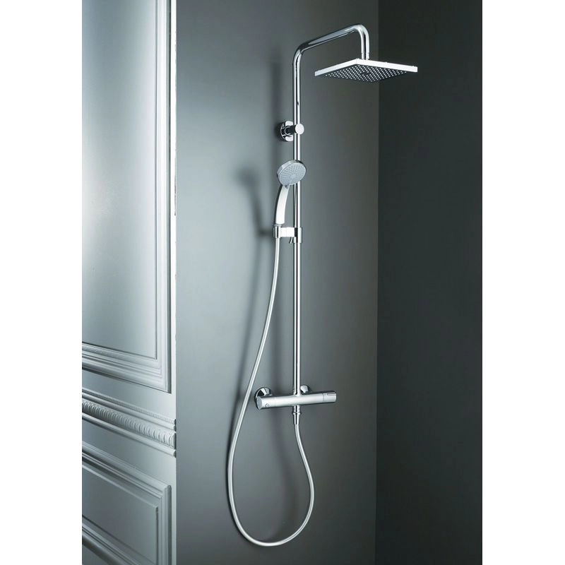 Снижает колебания температуры. Максимальная температура 50°C . Поворотный кронштейн для верхнего душа . Предохранительный упор на 37°C