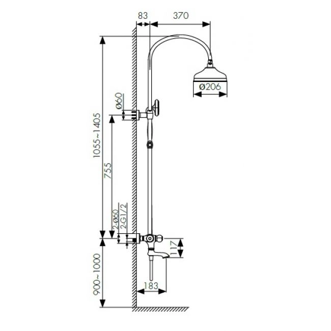 Душевая система KAISER Aria с термостатом, золото (стац. лейка мет. ?-200mm)