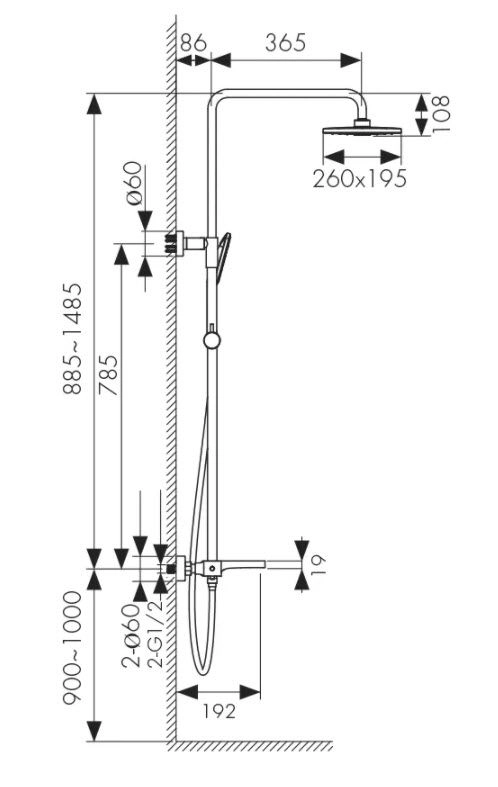 Душевая система KAISER Star с термостатом (стац. лейка 250mm*190mm), черный