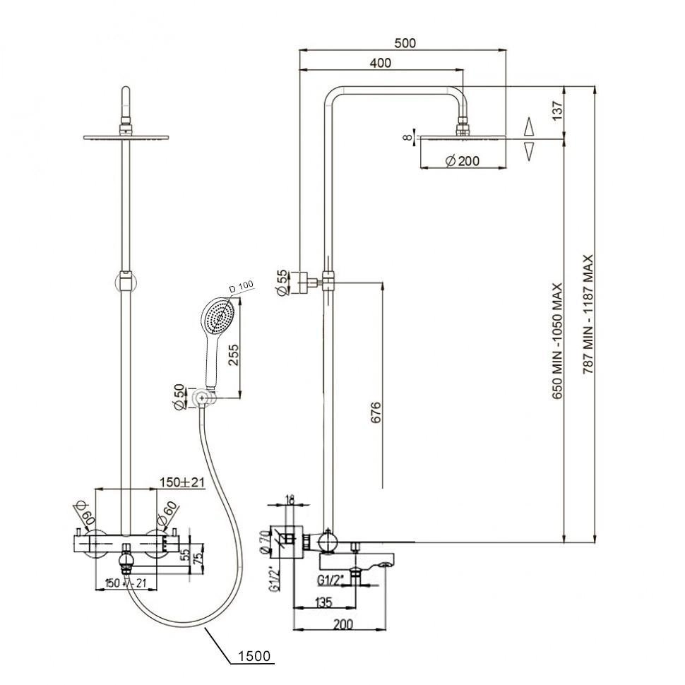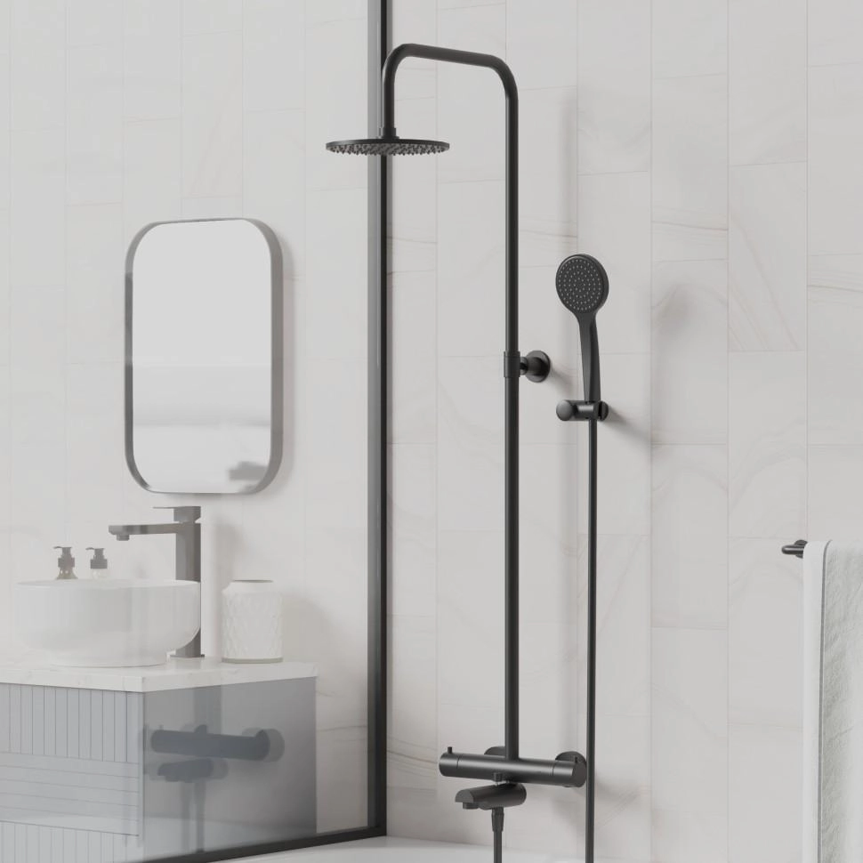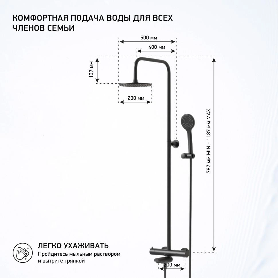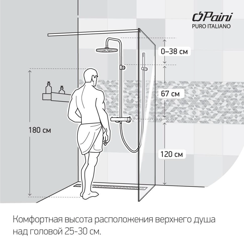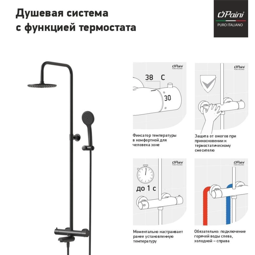 Душевая система оснащена смесителем с функцией термостата. Современное супер функциональное решение актуально для всех. Выставите один раз температуру и при включении не нужно ждать, когда вода станет нужной комфортной температуры, все уже настроено. Защита от ожогов, экономия водных ресурсов.
