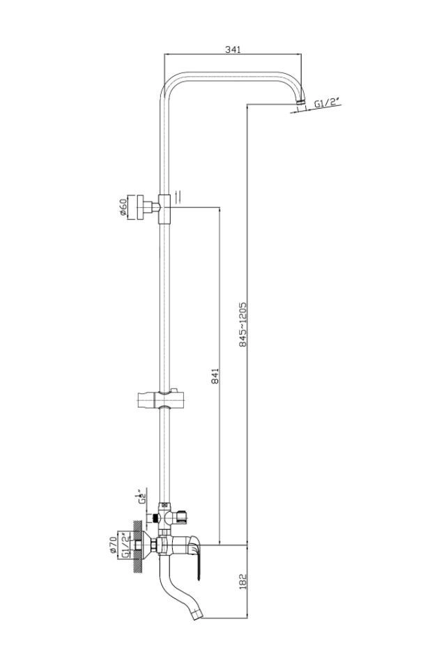 • Длина колена душ.штанги для троп-ой лейки - 341мм.