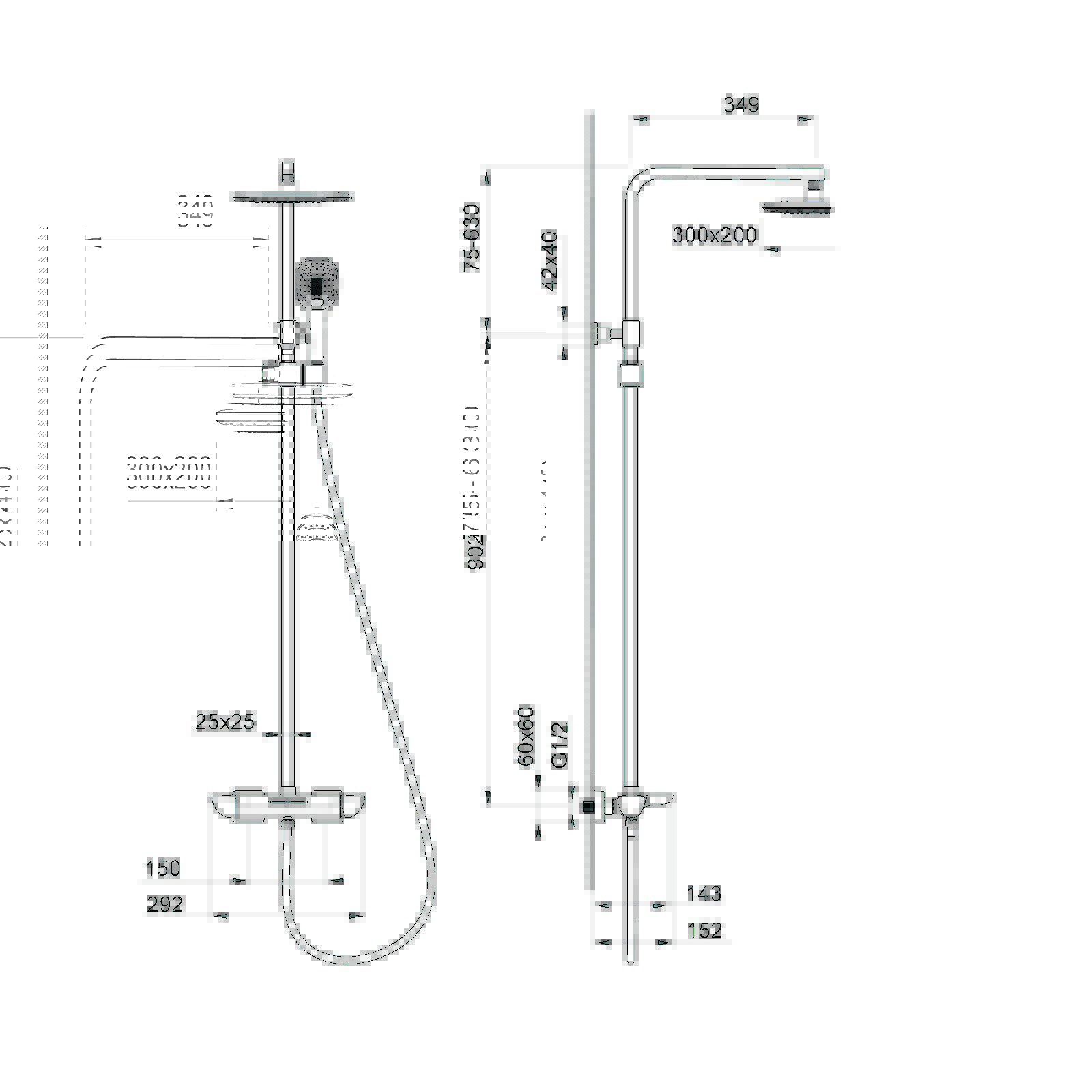 Штанга тропического душа, выдвижная - 1 шт.