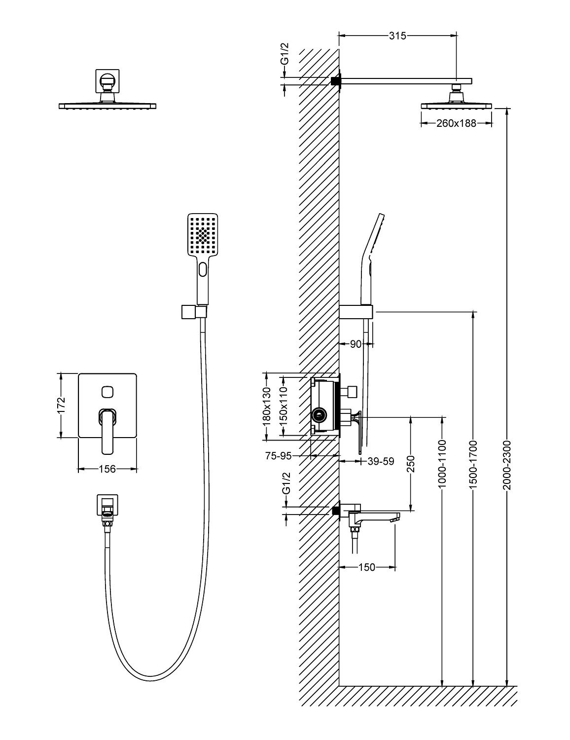 Смеситель скрытого монтажа с монтажной коробкой - 1 шт.