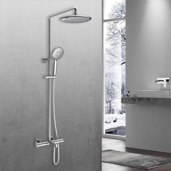 Ограничитель температуры<br>Поверхность глянцевая<br>Стандарт подводки 1/2"<br>Механизм термостат<br>Длина шланга, см* 150<br>Состав комплекта :Верхний душ, ручной душ, смеситель со встраиваемой частью<br>