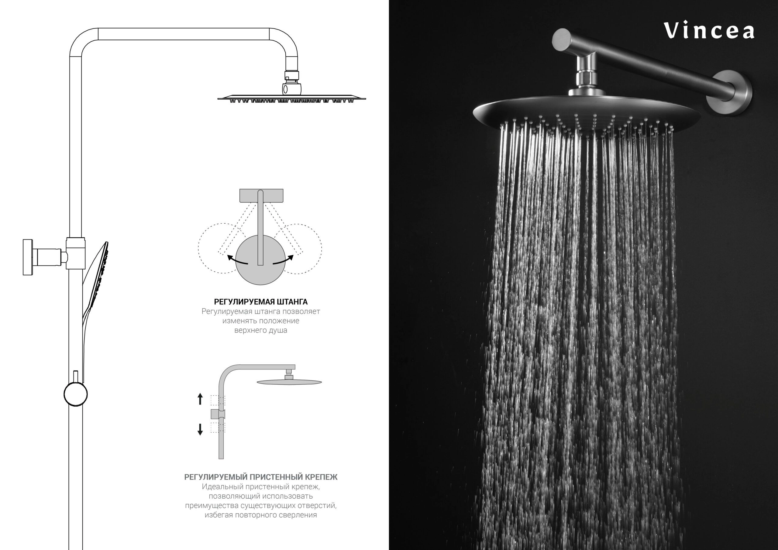 250x250<br>Материл ручного душа ABS<br>Материал верхнего душа нержавеющая сталь<br>Легкое очищение,
