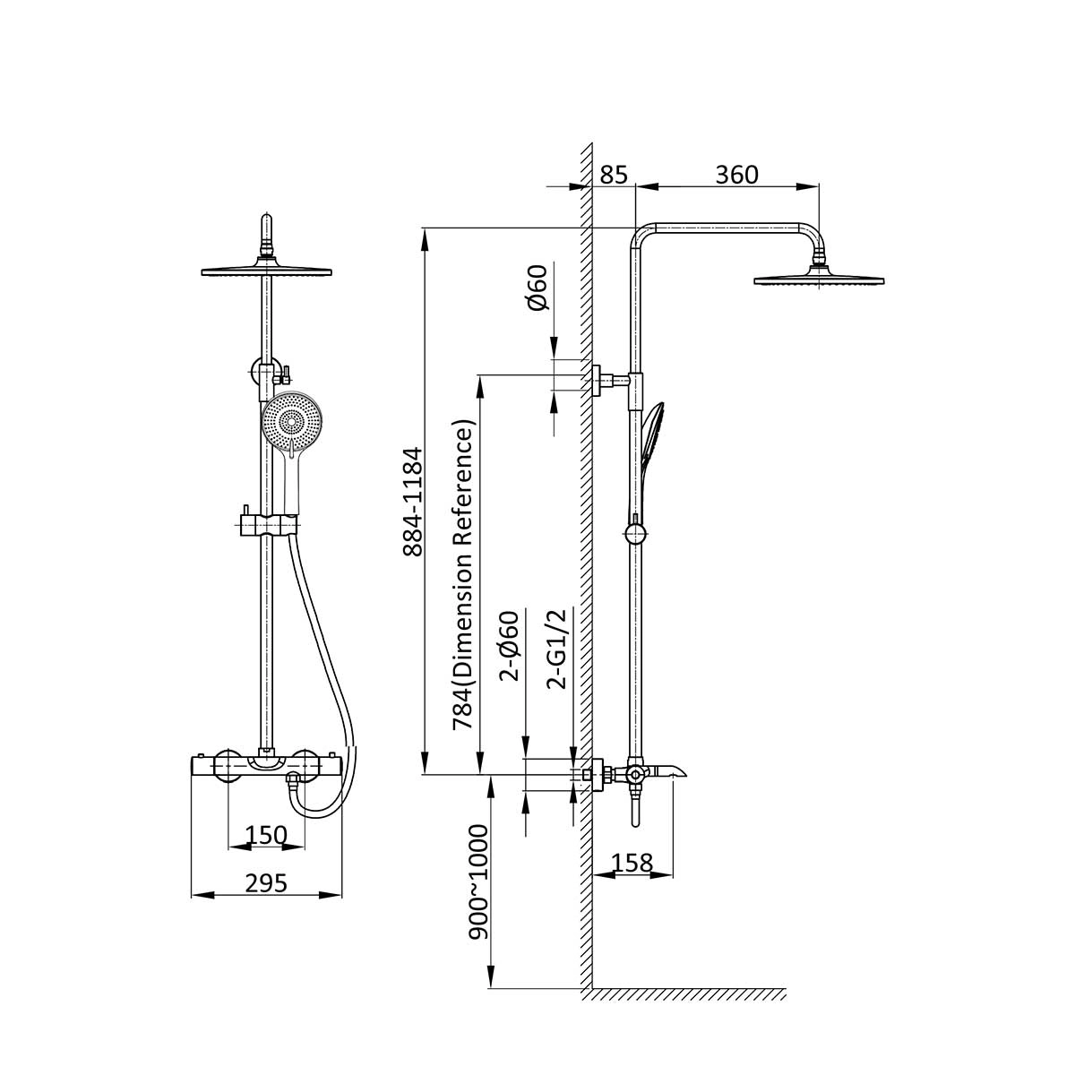 Ограничитель температуры<br>Поверхность глянцевая<br>Стандарт подводки 1/2"<br>Механизм термостат<br>Длина шланга, см* 150<br>Состав комплекта :Верхний душ, ручной душ, смеситель со встраиваемой частью<br>