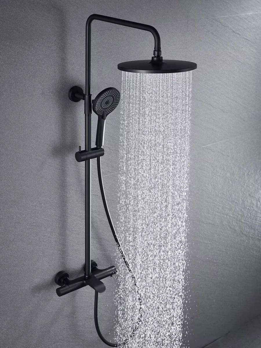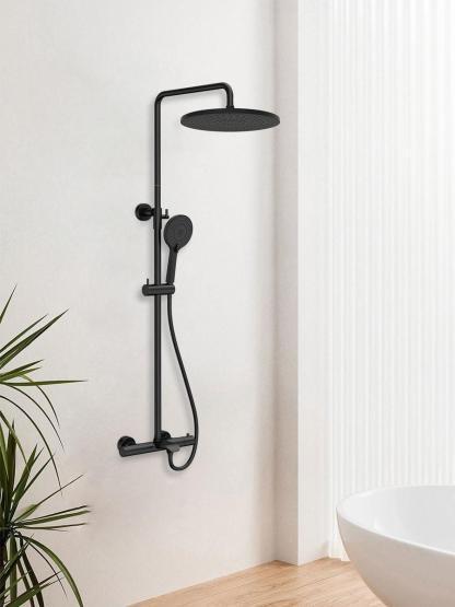Ограничитель температуры<br>Поверхность матовая<br>Стандарт подводки 1/2"<br>Механизм термостат<br>Длина шланга, см* 150<br>Состав комплекта :Верхний душ, ручной душ, смеситель со встраиваемой частью<br>