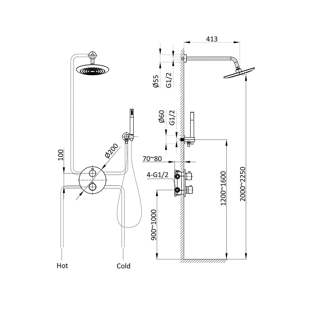 Ограничитель температуры<br>Поверхность глянцевая<br>Стандарт подводки 1/2"<br>Механизм термостат<br>Длина шланга, см* 150<br>Состав комплекта :Верхний душ, ручной душ, смеситель со встраиваемой частью<br>