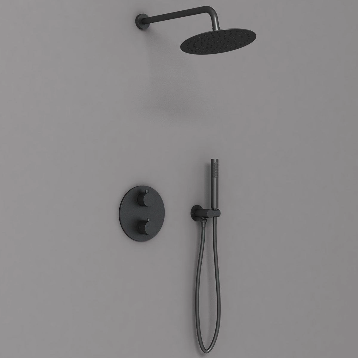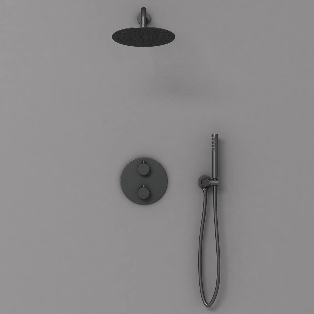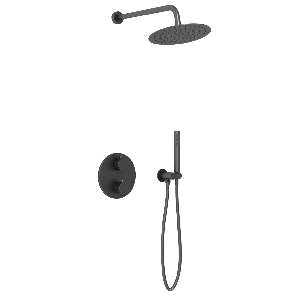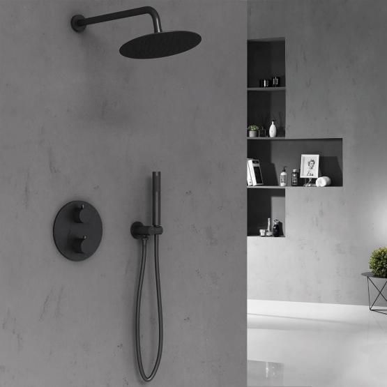 Комплектуется термостатическим картриджем Vernet<br>Материал латунь<br>Форма верхнего душа круглая<br>Размер верхнего душа, мм 255x255<br>Материл ручного душа латунь<br>Материал верхнего душа нержавеющая сталь<br>Легкое очищение,