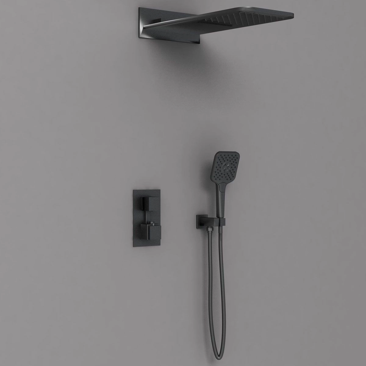 Ограничитель температуры<br>Поверхность матовая<br>Стандарт подводки 1/2"<br>Механизм термостат<br>Длина шланга, см* 150<br>Состав комплекта :Верхний душ, ручной душ, смеситель со встраиваемой частью<br>