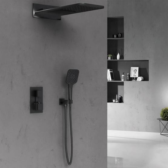 Каскадный/тропический душ<br>Материал латунь<br>Форма верхнего душа прямоугольная<br>Размер верхнего душа, мм 532x275<br>Материл ручного душа латунь<br>Материал верхнего душа латунь<br>Легкое очищение,