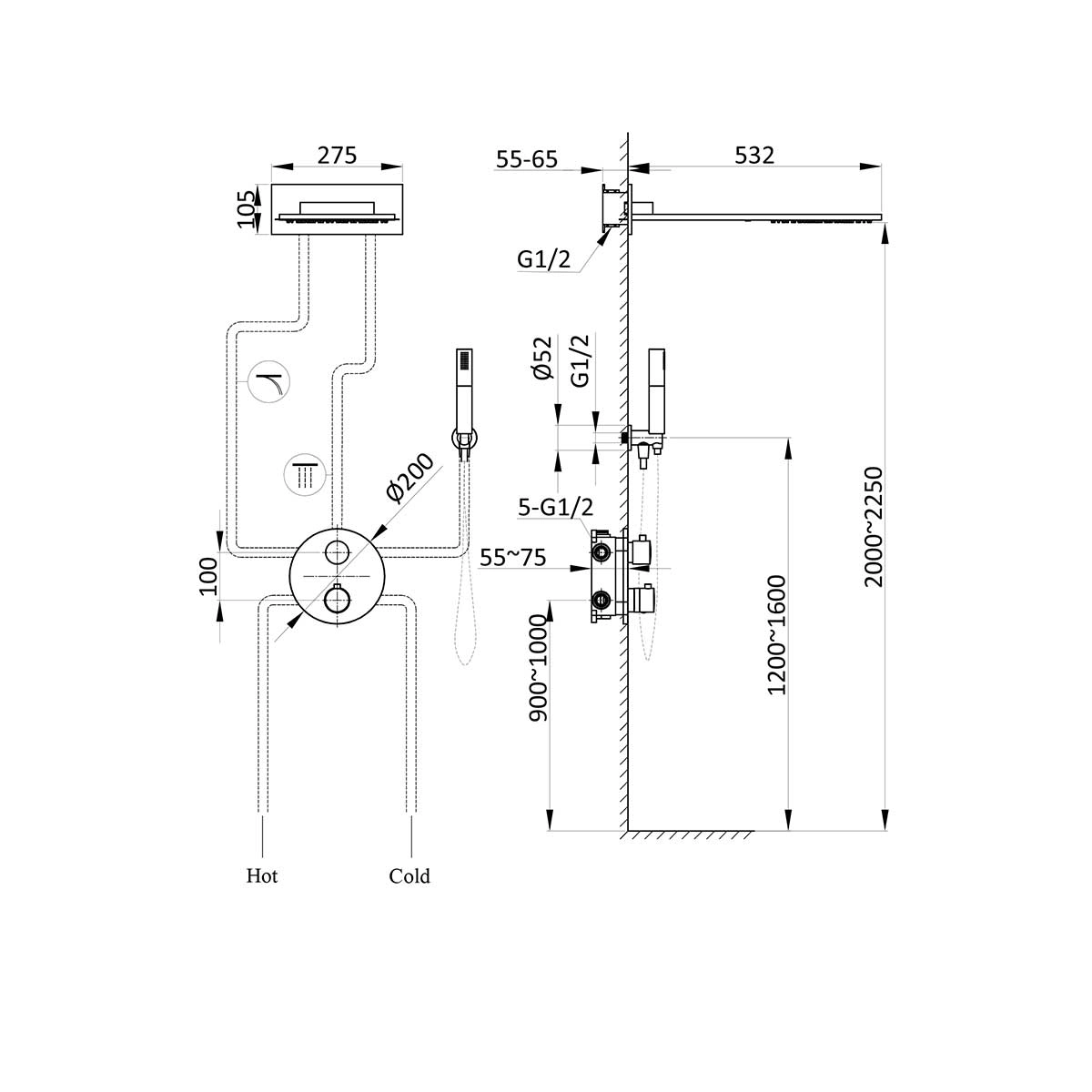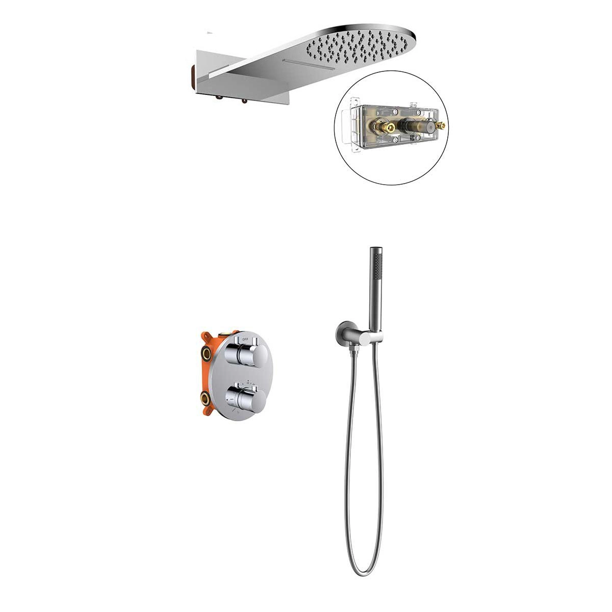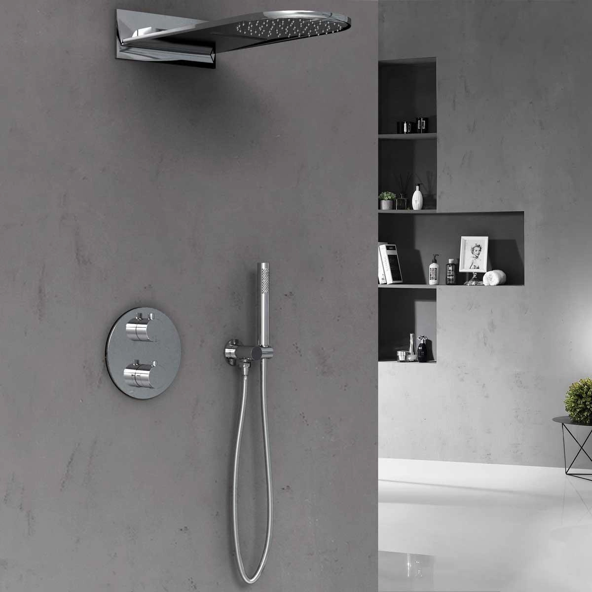 Каскадный/тропический душ<br>Материал латунь<br>Форма верхнего душа прямоугольная<br>Размер верхнего душа, мм 532x275<br>Материл ручного душа латунь<br>Материал верхнего душа латунь<br>Легкое очищение,