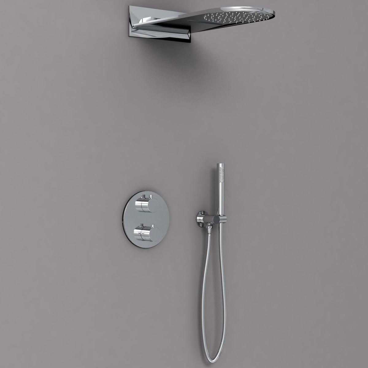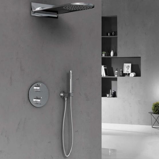 Ограничитель температуры<br>Поверхность глянцевая<br>Стандарт подводки 1/2"<br>Механизм термостат<br>Длина шланга, см* 150<br>Состав комплекта :Верхний душ, ручной душ, смеситель со встраиваемой частью<br>