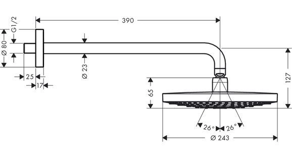 | 26466400 | HG Raindance Select S Верхний душ d240мм, 2jet (RainAir, Rain), шарнирное соединение, G1/2, с настенным держателем 390мм, цвет: белый/хром | 1 | HANSGROHE | Raindance Select S | А0002414770 |