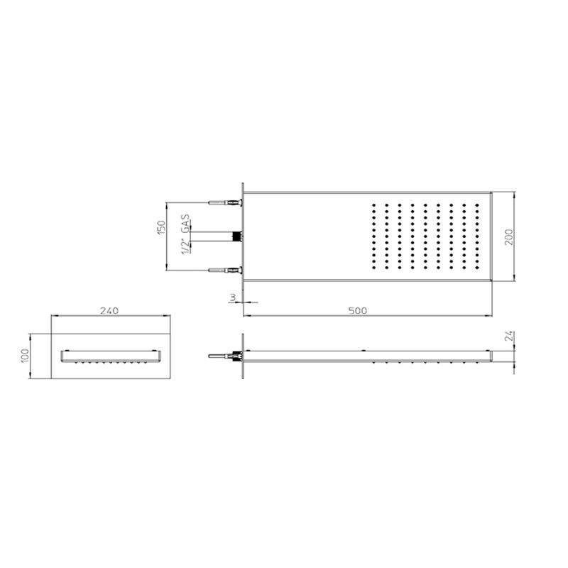 Прямоугольный верхний душ 500x200 с режимом дождь. Душ оснащен резиновыми диффузорами система Easy-Clean - Легкая очистка от извесковых отложений скопивишехся от воды. Насыщенная воздухом душевая струя обильно обливает ваше тело водой. Наслаждайтесь водными процедкрами каждый раз принимая душ. Для включения необходимо установить смеситель внутреннего монтажа.
